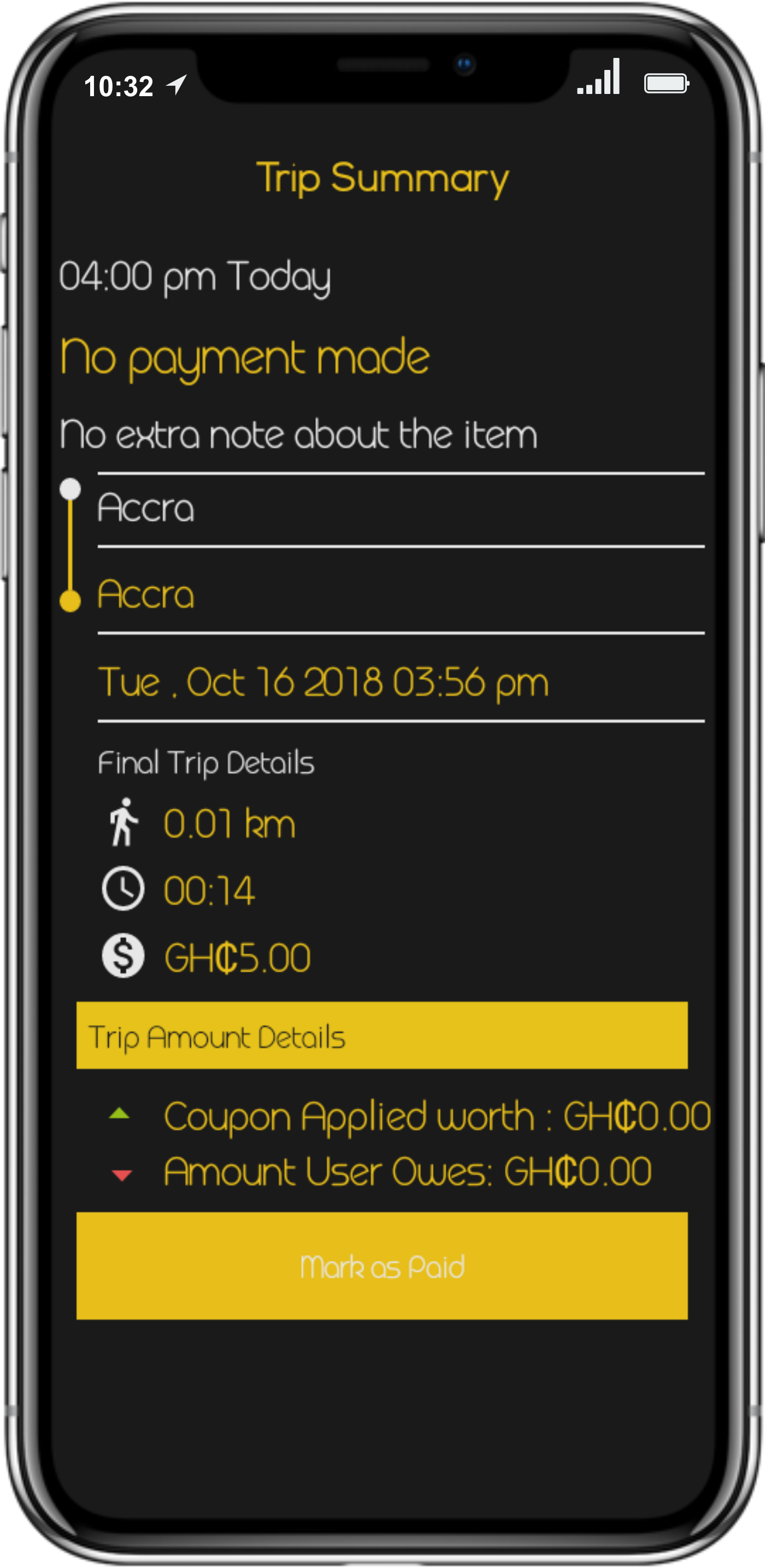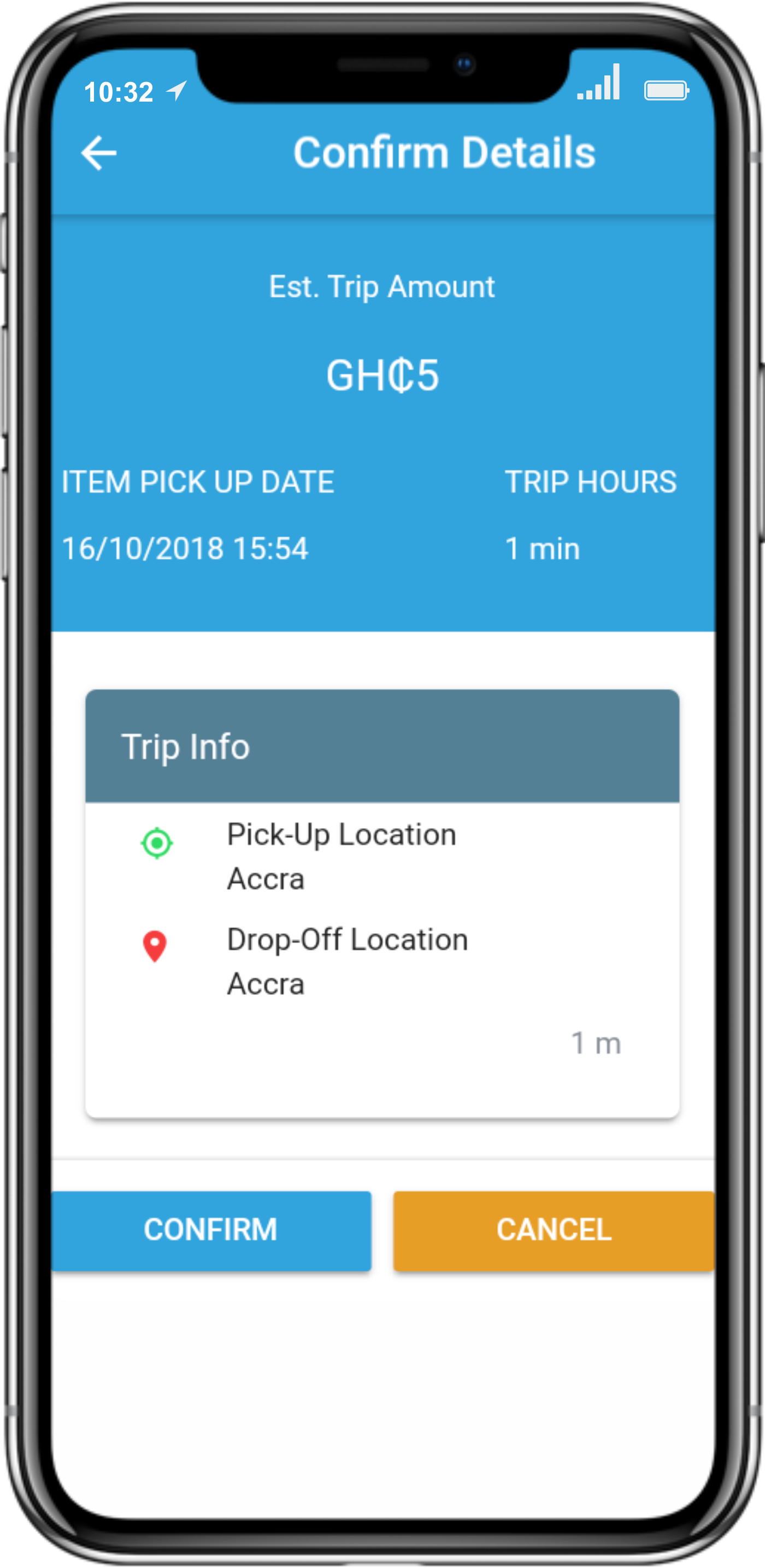 Real time view of the rider/driver’s location on the map to enable tracking of your package.
